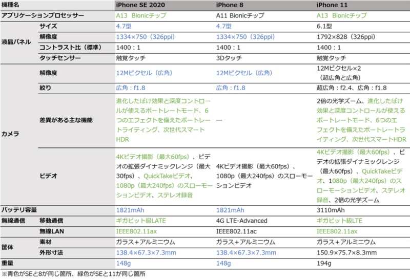 Iphone Se 第二世代 とiphone 8をスペック比較 Alumania Information
