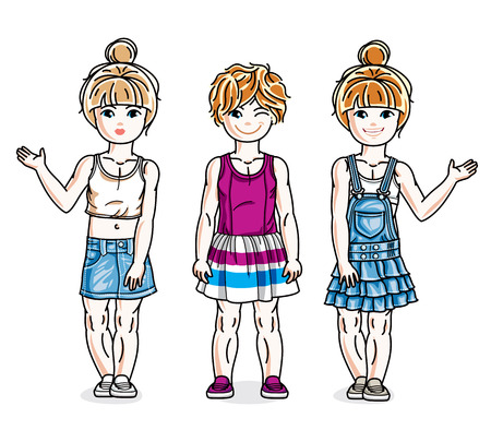 かわいい女の子がおしゃれなカジュアル服で立っています ベクター子供のイラスト セット のイラスト素材 ベクタ Image 7572