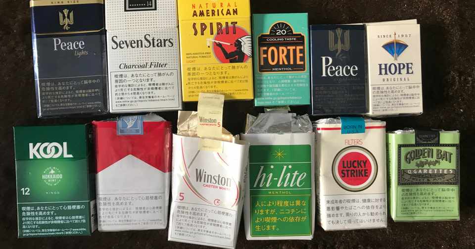 ট ইট র Www9945 左上 香港 左下 日本 右上 タイ 右下 ベトナムのタバコ 日本と香港は表示が緩い 日本のアメスピはカッコいい 印象すらある トレーダーさんこれ吸っている方多かった なぜこの銘柄 無農薬だから と尋ねると 少しだけ長く吸えるから